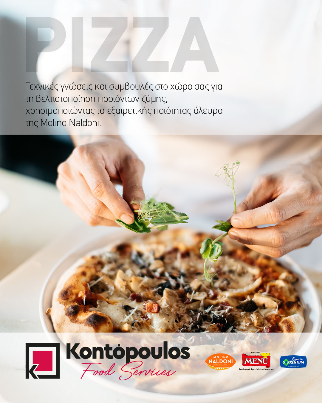 Η Κοντόπουλος Food Service, με 30 χρόνια εμπειρίας στον χώρο της εστίασης, συνεργάζεται με κορυφαίους επαγγελματίες για την καλύτερη υποστήριξη των πελατών της. Ο νέος μας συνεργάτης, Γιώργος Κούκης, Pizza Master Instructor, με πιστοποιήσεις από την παγκοσμίως αναγνωρισμένη Accademia Pizzaioli, και τεχνικός σύμβουλος της Molino Naldoni, διαθέτει εξειδικευμένη γνώση σε ζύμες όπως η Pizza Napoletana, Contemporanea Napoletana, Pizza Classica, Pizza Romana κ.α. Παρέχει τεχνικές γνώσεις και συμβουλές στο χώρο σας για τη βελτιστοποίηση προϊόντων ζύμης, χρησιμοποιώντας τα εξαιρετικής ποιότητας άλευρα της Molino Naldoni.